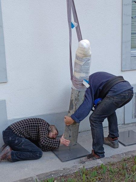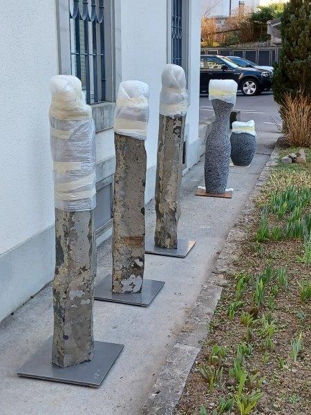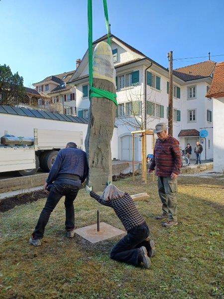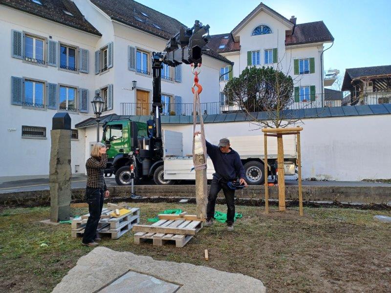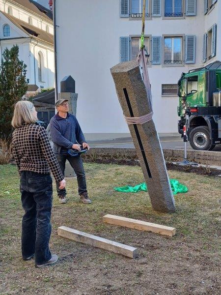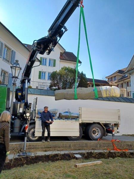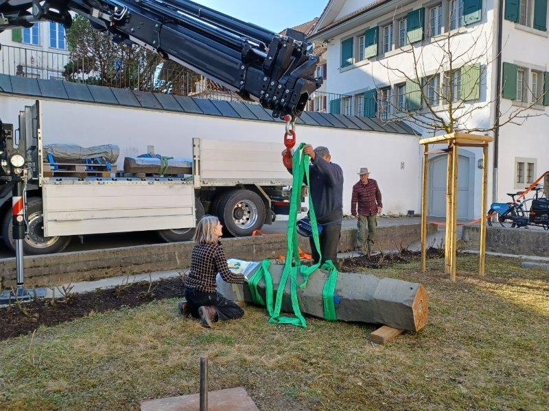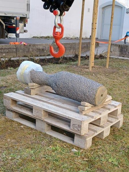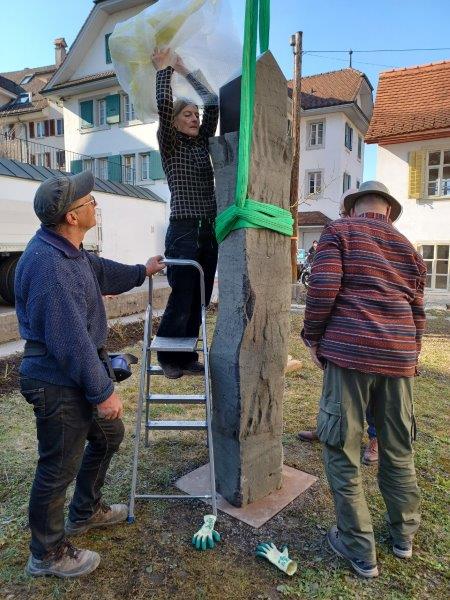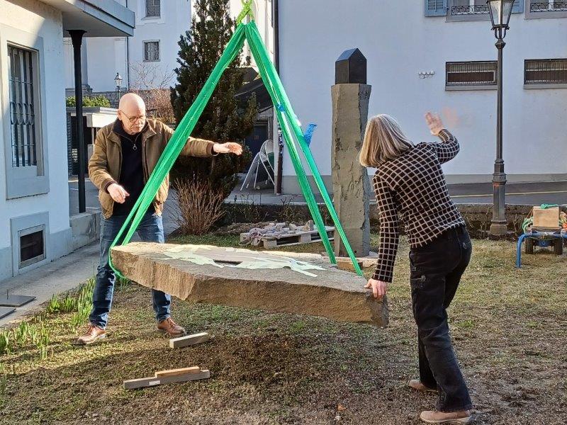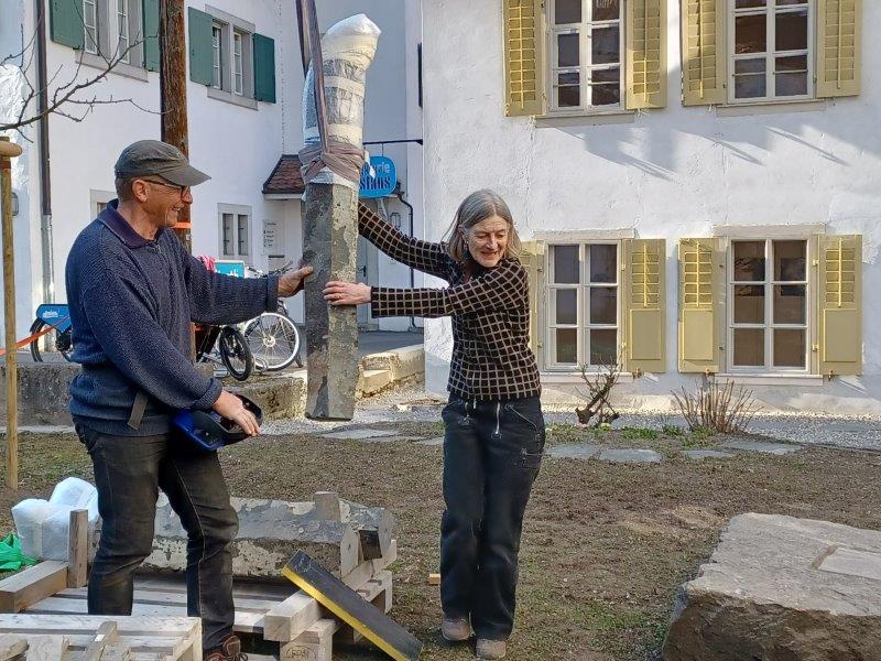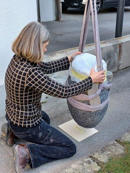 4. März 2022 - Anlieferung der Steinskulpturen von Nadja Iseli (Fotos Galerie Stans)
